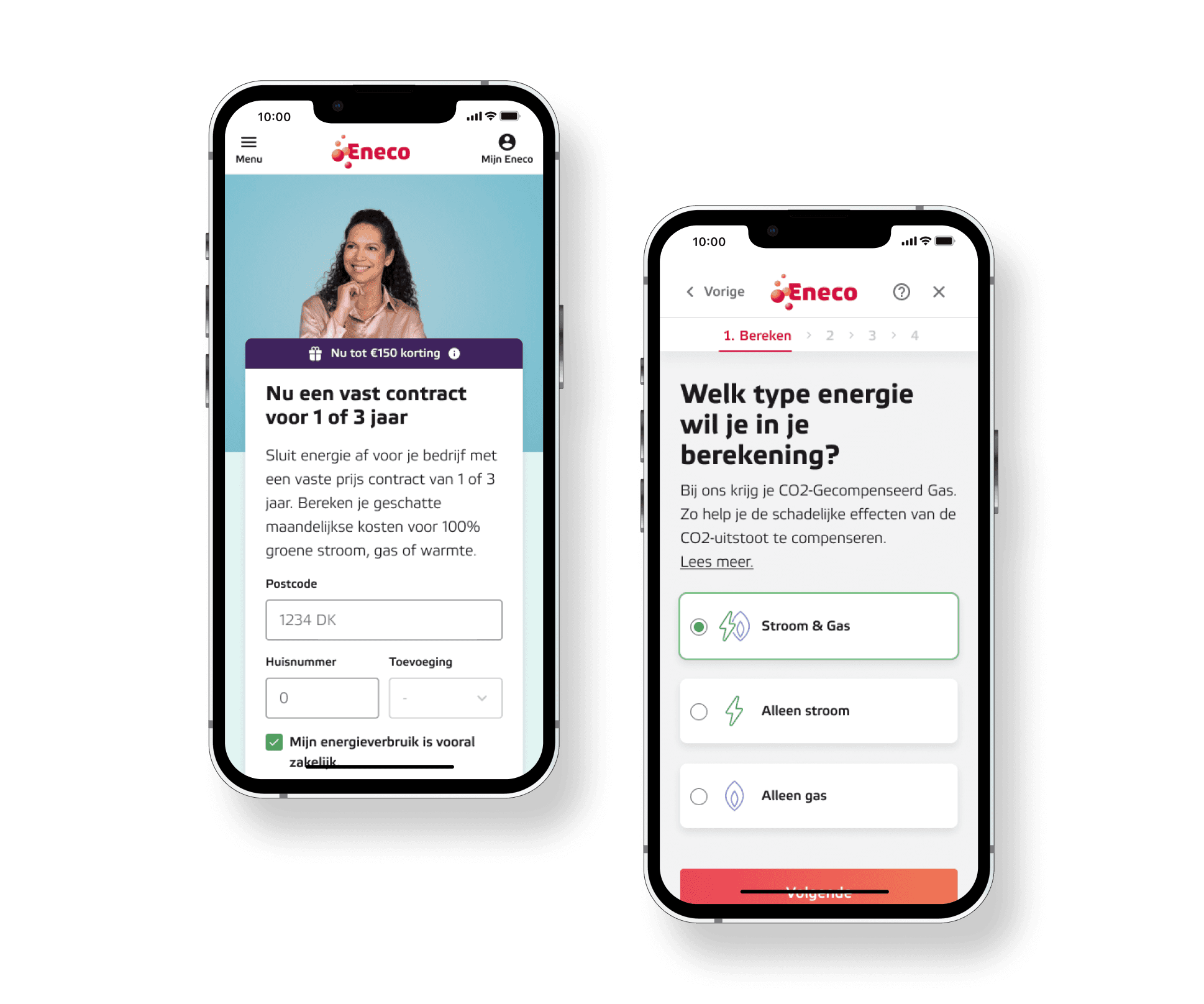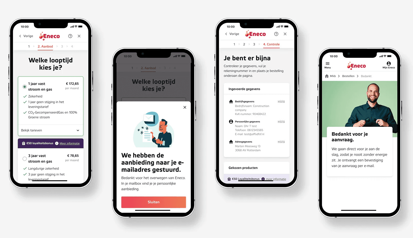 Eneco's SME sales funnel was converting just 2.7% of users, with mobile performance nearly half that of desktop. I led a full research-to-delivery cycle: discovery workshops, emotional journey mapping, prototype testing, and a 50/50 A/B test with 100% statistical confidence. Result: 65.6% CTR on the offer step (+5.7% uplift) and a 24% lift in final conversions, the winning variation was fully rolled out.