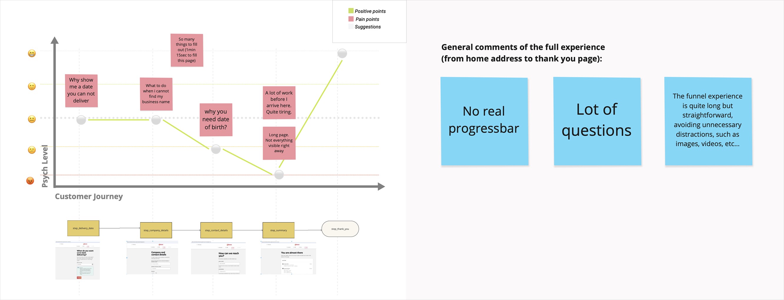 Emotional journey map workshop (clustered feedbacks) - Flow 3: Checkout after selecting the offer.