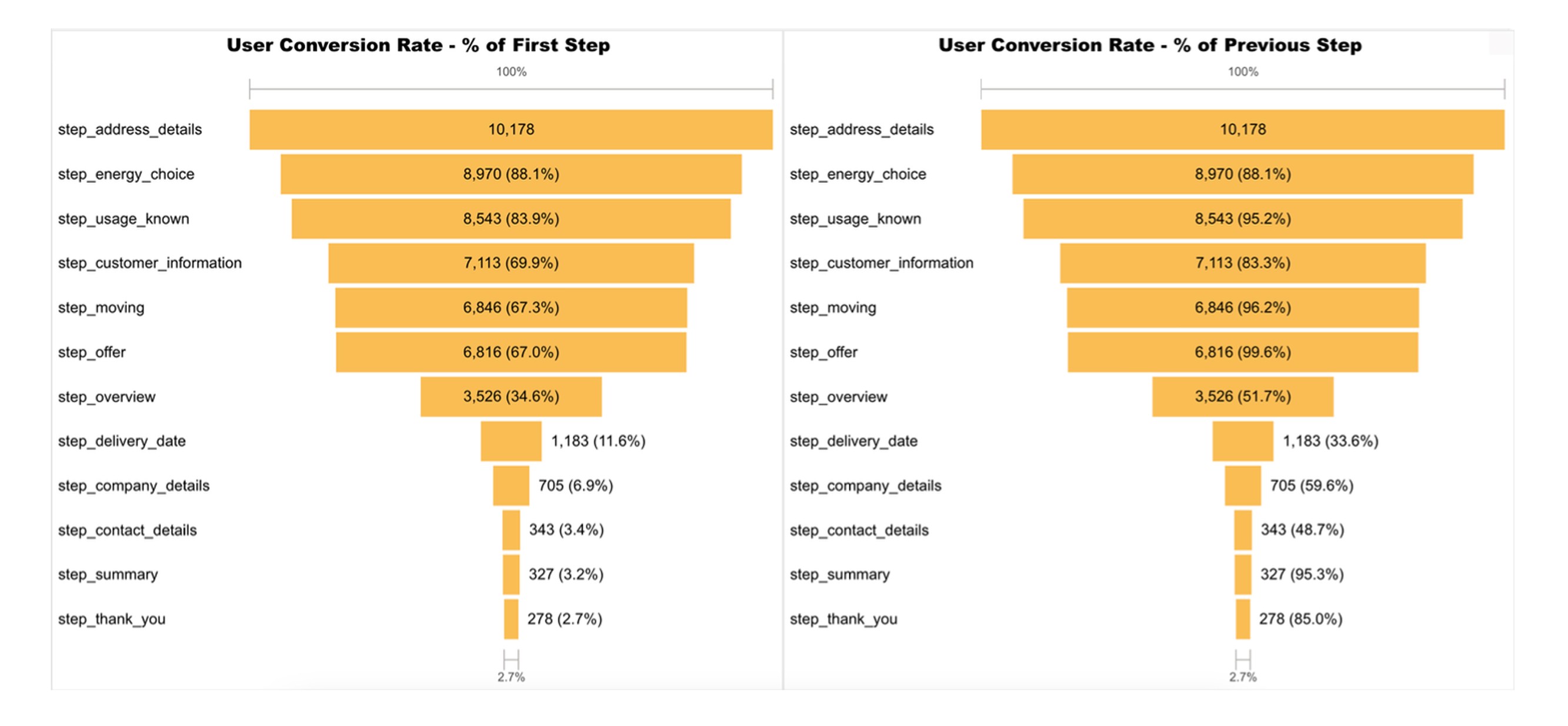 ➔ Conversion Rate: 2.7% of ~10,000 users completed