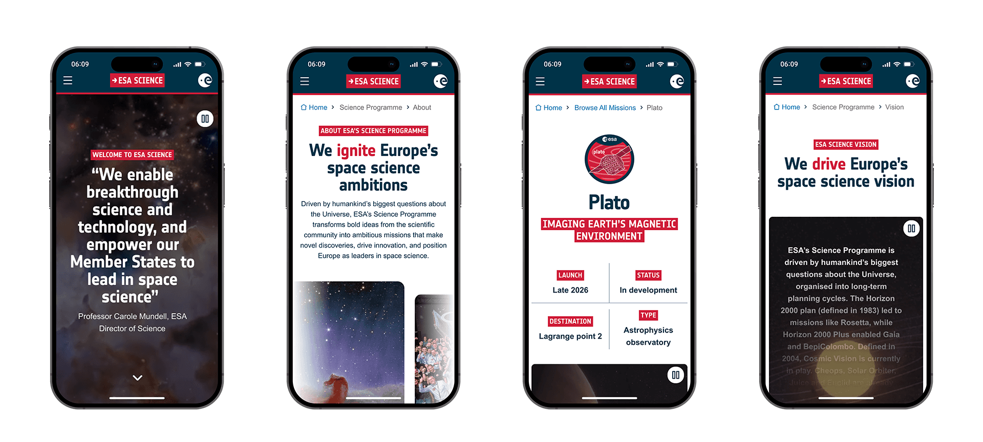ESA's Science Directorate had no unified design language. I built one from scratch, primitives, typography, colour, components, and motion, to ensure every page could be assembled quickly, consistently, and in alignment with the platform's scientific authority.